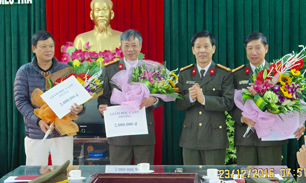 Ngày 23-12, Đại tá Đào Anh Tuấn, Phó giám đốc Công an TP Hải Phòng khen thưởng CBCS Phòng An ninh điều tra và các đơn vị tham gia về thành tích xuất sắc, phá thành công chuyên án, đấu tranh với nhóm đối tượng mua bán trái phép hóa đơn GTGT ghi khống 1400 tỷ đồng.
