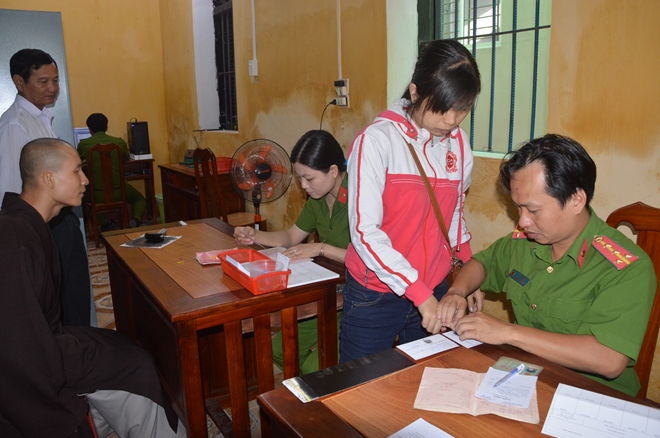 | Người dân được cán bộ Công an làm thủ tục cấp CMND |