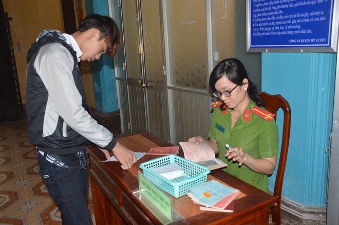 | Công an huyện Mỹ Xuyên (Sóc Trăng), làm thủ tục cấp CMND cho người dân ngày làm việc đầu tiên sau Tết Nguyên đán Mậu Tuất. |