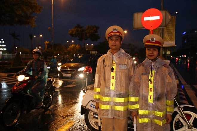 Mặc dù thời tiết mưa bão, các CBCS Công an Đà Nẵng, các cục nghiệp vụ Bộ Công an và Công an các đơn vị, địa phương đã phối hợp hoàn thành xuất sắc nhiệm vụ đảm bảo ANTT, ATGT tại các địa điểm diễn ra sự kiện, hội nghị trong ngày đầu tiên của Tuần lễ Cấp cao APEC 2017.