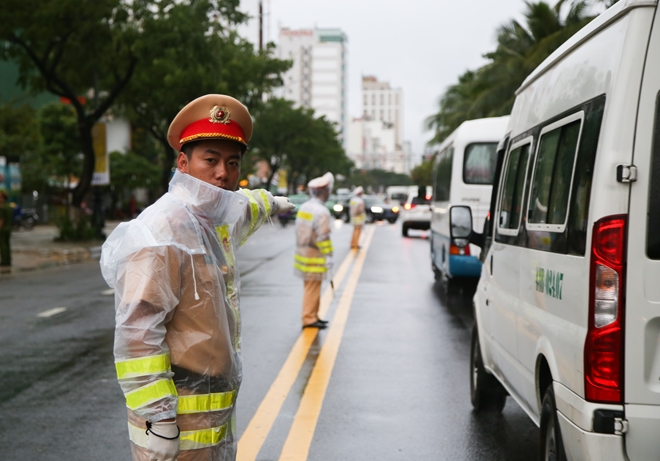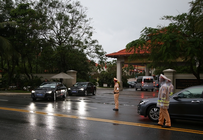 | Dù thời tiết mưa gió không thuận lợi nhưng trong ngày đầu tiên, lực lượng CSGT đã tổ chức đưa đón, dẫn đoàn các trưởng SOM, đại biểu các nền kinh tế đến tham dự các hội nghị trong ngày đầu tiên của TLCC APEC diễn ra tại TP Đà Nẵng đúng thời gian quy định và đảm bảo an toàn |