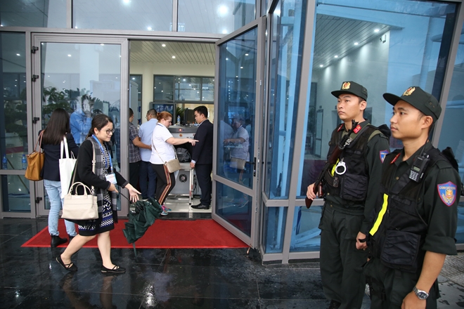 | Lực lượng CSCĐ và cảnh vệ đảm bảo an ninh tại cửa ra, vào tại khu vực diễn ra sự kiện. |