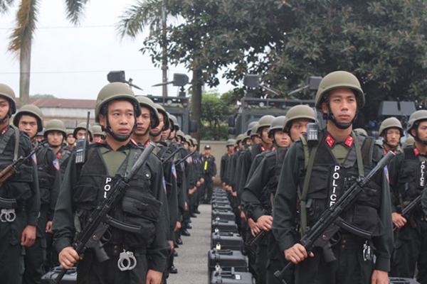 | Lực lượng CSCĐ triển khai phương án sẵn sàng bảo vệ an toàn tuyệt đối cho ngày hội đất nước. Ảnh: Quỳnh Vinh. |