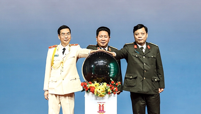 | Trung tướng Bùi Văn Thành, Thứ trưởng Bộ Công an; Đại tá Nguyễn Hải Trung, Phó Tổng cục trưởng Tổng cục Chính trị CAND; Thiếu tướng Phạm Văn Miên, Tổng Biên tập Báo CAND nhấn nút Khai trương trang Báo điện tử CAND phiên bản tiếng Trung Quốc |
