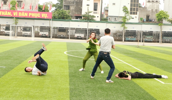 với sự mưu trí, linh hoạt sử dụng các động tác võ thuật, chiến sỹ đã nhanh chóng hạ gục các đối tượng.