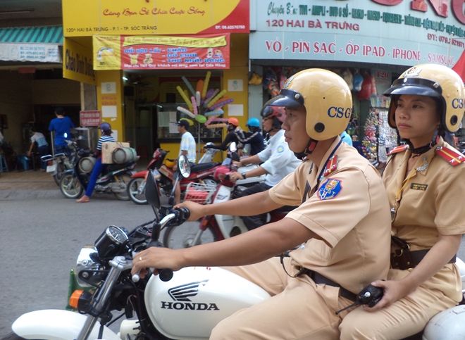 | Lực lượng CSGT Công an TP Sóc Trăng, ra quân đảm bảo TTATGT trên địa bàn. |