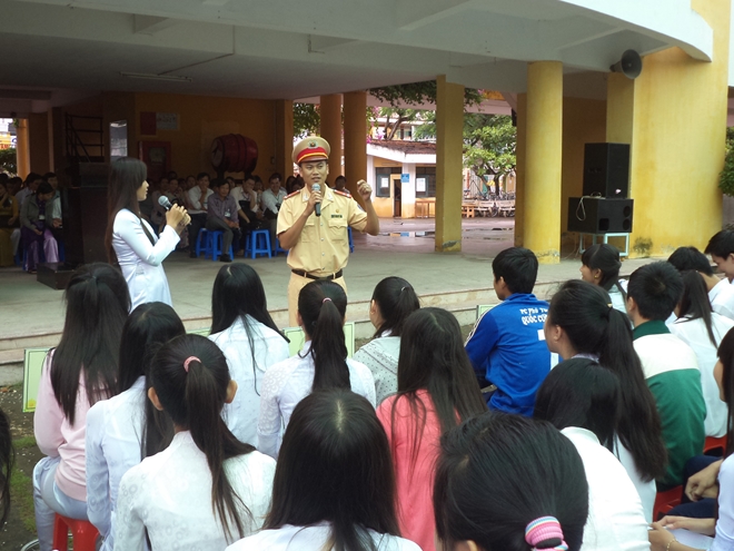 | Ngoài ra, lực lượng CSGT Công an TP Sóc Trăng còn đến các trường học trên địa bàn tuyên truyền Luật Giao thông đường bộ cho các em học sinh. |