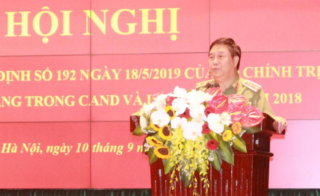 | Trung tướng, GS.TS Nguyễn Ngọc Anh truyền đạt nội dung Luật CAND năm 2018. |