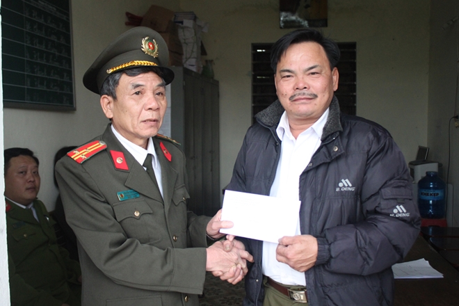 | Đại tá Võ Trọng Hải, Giám đốc Công an tỉnh tặng quà cho các đồng chí nguyên Trưởng, Phó Công an xã, Công an viên trên địa bàn toàn tỉnh. |
