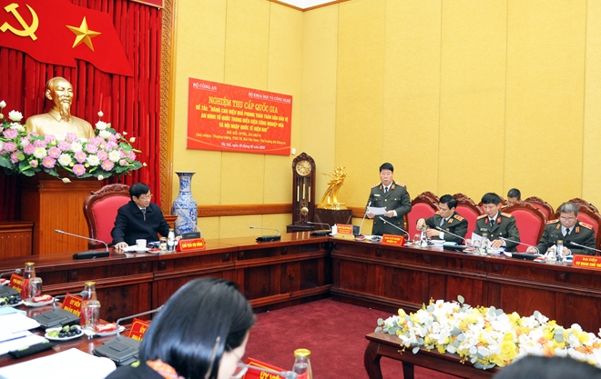 | Toàn cảnh buổi nghiệm thu cấp Quốc gia đề tài “Nâng cao hiệu quả phong trào Toàn dân bảo vệ an ninh Tổ quốc trong điều kiện công nghiệp hóa và hội nhập quốc tế hiện nay”. |