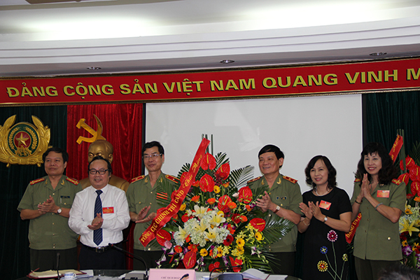 | Tổng cục Chính trị CAND tặng hoa chúc mừng Liên chi hội nhà báo Bộ Công an. |
