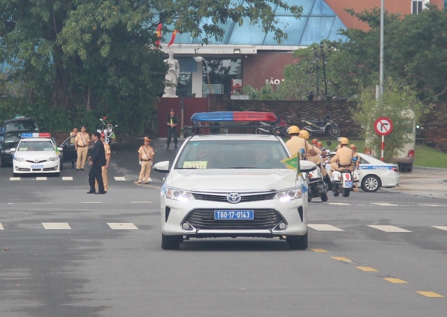 Trưa 11-11, chúng tôi bắt gặp các đoàn CSGT thuộc các đơn vị từ Cục Cảnh sát giao thông Bộ Công an; Công an TP Đà Nẵng và Công an các đơn vị địa phương tập trung tại bãi đỗ xe ở khu vực bán đảo Sơn Trà để làm nhiệm vụ dẫn, đón đoàn đại biểu 21 nền Kinh tế tham dự Tuần lễ cấp cao APEC.