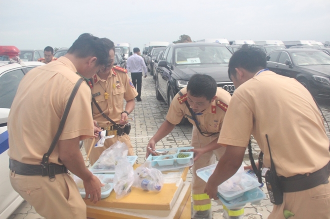 | Những suất ăn trưa "đặc biệt" của lực lượng CSGT làm nhiệm vụ tại Tuần lễ APEC. |