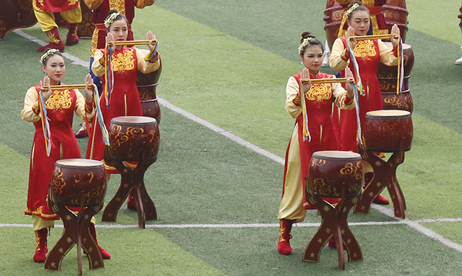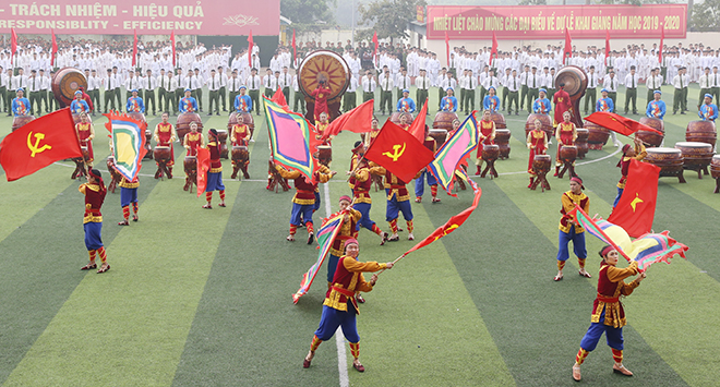 Màn trống hội chào mừng khai giảng tại Học viện CSND. |