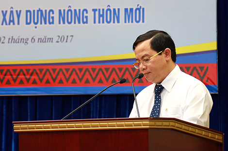 | Ông Điểu K’ré, Ủy viên TW Đảng, Phó trưởng Ban Thường trực Ban Chỉ đạo Tây Nguyên phát biểu tại hội thảo. |