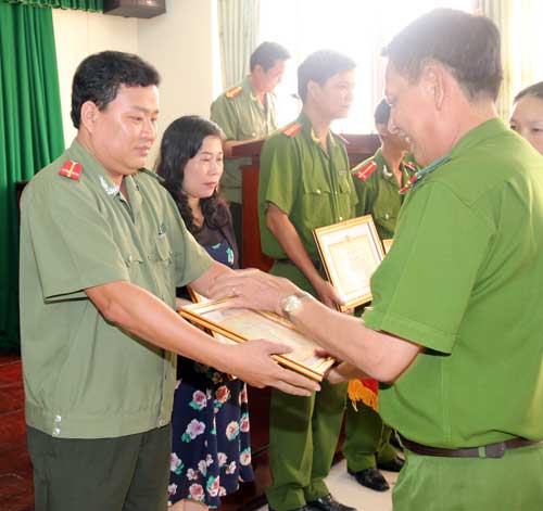 Lãnh đạo Công an thành phố tặng Bằng khen của UBND TP.Cần Thơ cho các tập thể, cá nhân tiêu biểu. |