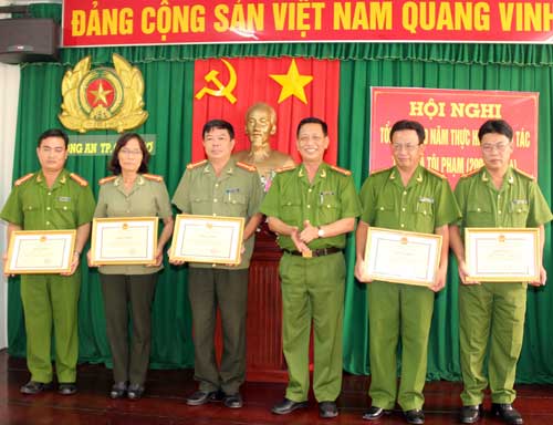 | Lãnh đạo Công an thành phố tặng Giấy khen của Giám đốc Công an TP.Cần Thơ cho các tập thể, cá nhân tiêu biểu. |