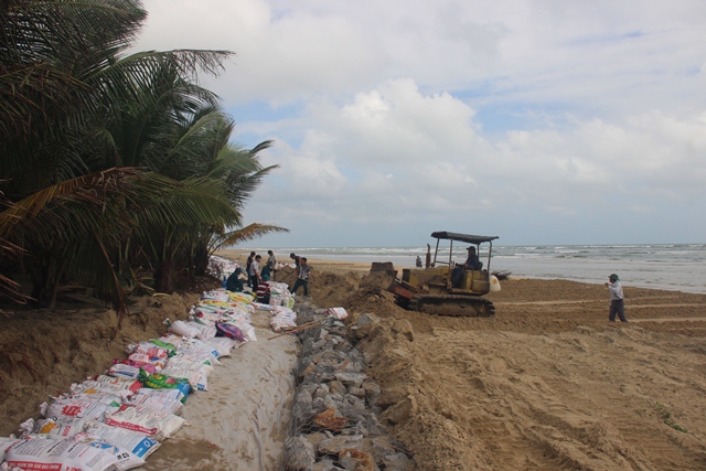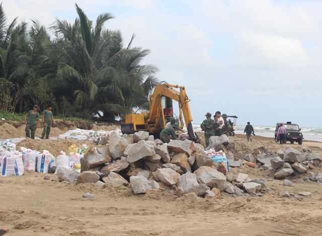 Ngày 9-11, Đồn biên phòng Lăng Cô, thuộc Bộ Chỉ huy BĐBP tỉnh Thừa Thiên- Huế đã điều động nhiều CBCS cùng với người dân địa phương ở thị trấn Phú Lộc chung tay dựng kè đá bằng rọ thép, đá hộc và bao cát để khắc phục các điểm sạt lở dọc tuyến bờ biển Lăng Cô.