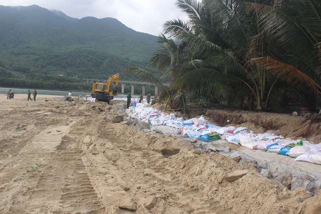 Ban Chỉ huy PCTT&TKCN tỉnh Thừa Thiên- Huế và chính quyền địa phương cũng đã cấp 100m3 đá hộc, gần 10.000 bao cát, 50 rọ thép, 800m vải lọc để phục vụ công tác khắc phục khẩn cấp sạt lở bờ biển Lăng Cô.
