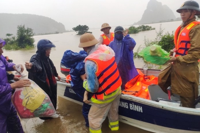 Chiều 21/10, Thượng tá Đinh Cao Quang-Trưởng Công an thành phố báo cáo lãnh đạo Ban Giám đốc Công an tỉnh Quảng Bình xin được đưa quân tăng cường về các vùng rốn lũ để hỗ trợ các địa phương khác còn bị ngập sâu, bị cô lập như Liên Thủy, An Thủy, Phong Thủy... huyện Lệ Thủy, Quảng Bình. Lực lượng Công an thành phố Đồng Hới dùng ca nô đưa nhiều người dân vùng ngập sâu đến nơi an toàn, hỗ trợ lương thực, nhu yếu phẩm cho bà con.