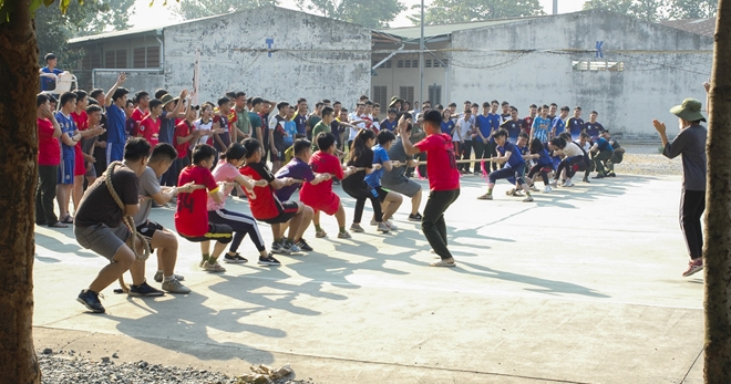 | Phần thi kéo co, đập bóng nước và chuyền bột đầy sôi động và hào hứng |