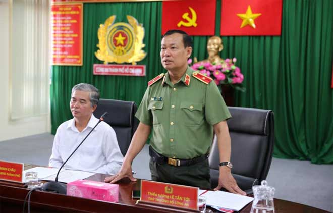 Thứ trưởng Lê Tấn Tới lưu ý, địa bàn thành phố là địa bàn trọng điểm của cả nước nên CATP lúc nào cũng phải trong tư thế cảnh giác cao, chủ động cao. Trong phòng chống tội phạm, CATP cần sớm trả lời được câu hỏi vì sao trên địa bàn thành phố tình trạng trộm cắp băng nhóm, tội phạm kiểu xã hội đen và tình trạng cướp giật còn xảy ra nhiều.