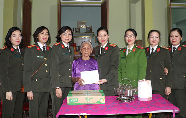 | Đoàn công tác Hội Phụ nữ Công an tỉnh thăm, tặng quà Mẹ Việt Nam anh hùng Nguyễn Thị Năm. |