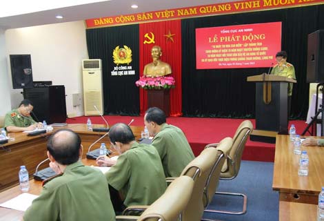 | Trung tướng Vũ Thanh Bình, Phó Tổng cục trưởng Tổng cục An ninh phát biểu tại Lễ phát động. Ảnh Việt Hưng. |