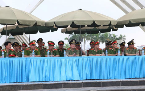 Đoàn Công tác Bộ Công an kiểm tra công tác tập luyện diễu binh, diễu hành. |