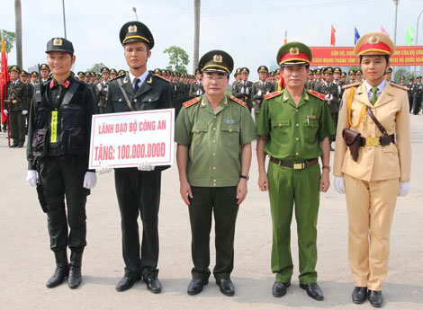 Thứ trưởng Bùi Quang Bền trao 100 triệu đồng tặng CBCS trực tiếp luyện tập phục vụ Lễ mít tinh, diễu binh, diễu hành kỷ niệm 70 năm Cách mạng Tháng 8 và Quốc khánh 2-9. |