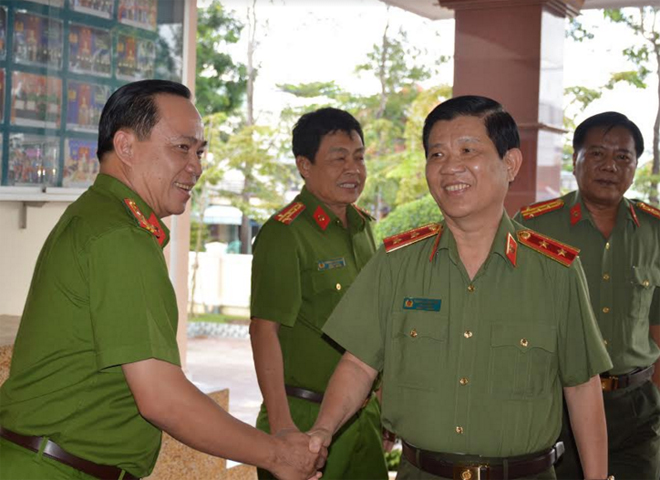 Thứ trưởng Nguyễn văn Sơn, kiểm tra công tác tại Công an tỉnh Cà Mau.