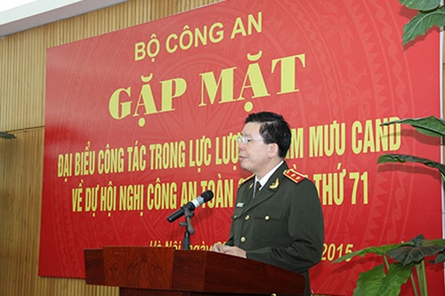 Trong không khí gặp mặt thân mật, Trung tướng Nguyễn Danh Cộng, Chánh Văn Phòng Bộ Công an đã thông báo tóm tắt thành tích của lực lượng Tham mưu CAND năm 2015, nêu rõ, trong năm qua, lực lượng tham mưu từ Bộ đến Công an các cấp đã có nhiều đổi mới, cải tiến các mặt công tác nhằm nâng cao chất lượng, hiệu quả công tác tham mưu. Đẩy mạnh ứng dụng công nghệ thông tin; thường xuyên bổ sung, hoàn thiện quy trình, quy chế công tác; phối hợp chặt chẽ với các lực lượng, đơn vị trong và ngoài lực lượng CAND nắm bắt, thu thập, phân tích, xử lý thông tin. Lực lượng tham mưu đã làm tốt chức năng tham mưu với cấp ủy, lãnh đạo Công an các cấp phát huy mối quan hệ phối hợp với các bộ, ban, ngành, cấp ủy Đảng, chính quyền địa phương, Mặt trận Tổ quốc Việt Nam và các tổ chức đoàn thể nhân dân, nhất là mối quan hệ phối hợp, hiệp đồng tác chiến với lực lượng Quân đội nhân dân; góp phần bảo vệ tuyệt đối an toàn các sự kiện chính trị quan trọng của đất nước…