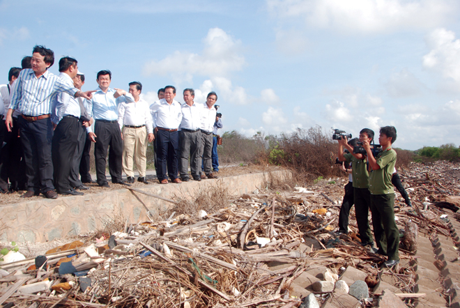 | Cán bộ Đội Tuyên truyền tác nghiệp, đón lãnh đạo Nhà nước về thăm và làm việc tại Tiền Giang. Ảnh: Minh Thanh |