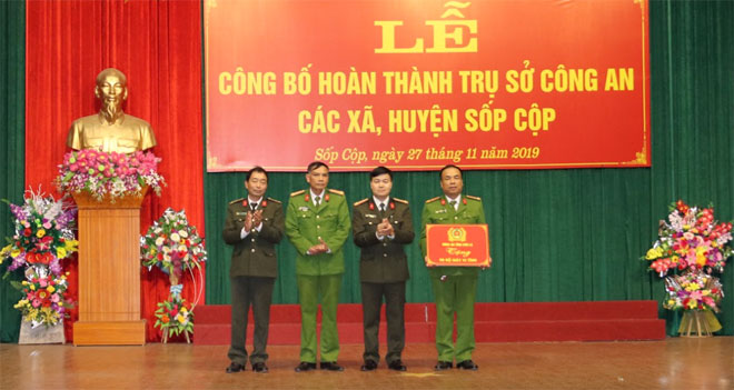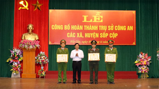 Nhân dịp này, Chủ tịch UBND huyện tặng giấy khen cho 3 cá nhân có thành tích xuất sắc trong đấu tranh với tội phạm ma túy. Đồng chí Giám đốc Công an tỉnh tặng 8 bộ máy vi tính cho Công an 8 xã. Trước đó, các đại biểu đã dự lễ cắt băng khánh thành trụ sở Công an xã Dồm Cang, huyện Sốp Cộp.