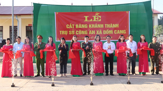 | Cắt băng khánh thành trụ sở Công an xã Dồm Cang. |