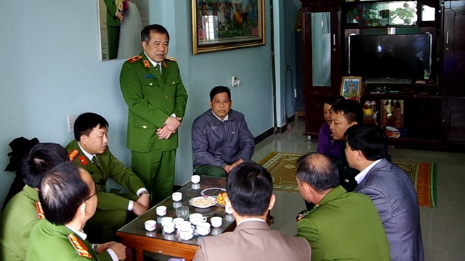 Thiếu tướng Phạm Văn Các, Phó Tổng cục trưởng Tổng cục Cảnh sát thăm hỏi động viên gia đình Thượng úy Lưu Minh Thức.
