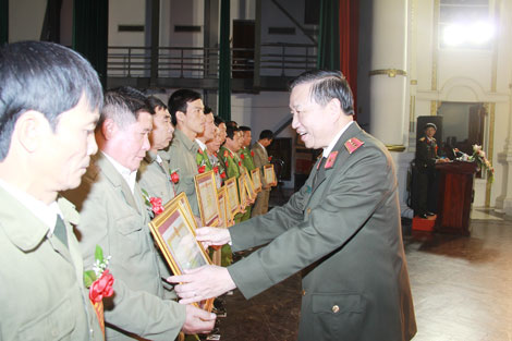 | Bộ trưởng Tô Lâm trao Bằng khen của Bộ Công an tặng các tập thể, cá nhân có thành tích xuất sắc. |
