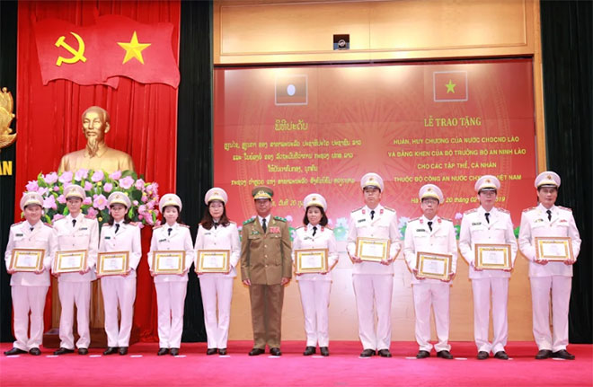 Tại buổi Lễ, đại diện lãnh đạo Tổng cục trưởng Tổng cục Chính trị Bộ An ninh CHDCND Lào đã công bố Sắc lệnh của Chủ tịch nước CHDCND Lào trao Huân chương Hữu nghị, Huân chương Lao động; công bố Sắc lệnh của Thủ tướng Chính phủ nước CHDCND Lào trao Huy chương Hữu nghị, Huy chương Lao động; công bố Quyết định trao Bằng khen của Bộ trưởng Bộ An ninh CHDCND Lào tặng các tập thể, cá nhân Bộ Công an Việt Nam.