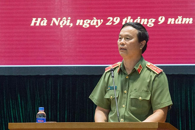 | Thiếu tướng, GS.TS Bùi Minh Giám, Phó Tổng cục trưởng Tổng cục Chính trị CAND phát biểu tại buổi lễ. |