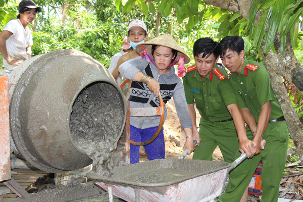 | Đoàn viên thanh niên Công an TP Cần Thơ tham gia xây dựng đường giao thông nông thôn trên địa bàn huyện Phong Điền. |