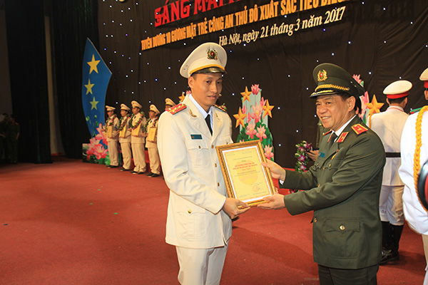 10 gương mặt trẻ xuất sắc tiêu biểu năm 2016 của Công an Thủ đô được vinh danh: 1. Đại úy Nguyễn Minh Phương, Phó Đội trưởng Đội quản lý nhập cảnh, Phòng Quản lý Xuất nhập cảnh; 2. Thượng úy Nguyễn Thị Mai Phương, cán bộ Phòng Bảo vệ Chính trị IV; 3. Trung úy Nguyễn Việt Anh, cán bộ Phòng Cảnh sát điều tra tội phạm về trật tự xã hội; 4. Đại úy Lê Duy Anh, Phó Đội trưởng Đội điều tra và hướng dẫn án kinh tế, Phòng Cảnh sát kinh tế; 5. Đại úy Nguyễn Đăng Tiến, Phó Đội trưởng Đội tuần tra dẫn đoàn, Phòng Cảnh sát giao thông; 6. Thượng úy Nguyễn Mạnh Tấn, Phó Đội trưởng Đội tham mưu tổng hợp, Phòng Thanh tra; 7. Đại úy Đào Mạnh Cường, Phó Đội trưởng Đội Cảnh sát điều tra tội phạm về trật tự xã hội Công an quận Đống Đa 8. Đại úy Nguyễn Quang Đông, Phó Đội trưởng Đội Cảnh sát điều tra tội phạm về trật tự xã hội Công an quận Hà Đông; 9. Đại úy Bùi Anh Vũ, Trưởng Công an phường Bạch Mai, Công an quận Hai Bà Trưng; 10. Đại úy Ngô Quốc Bình, Đội Cảnh sát điều tra tội phạm về ma túy Công an huyện Mê Linh. |