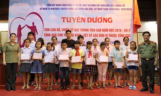 Năm học 2016-2017, là năm ghi dấu sự nỗ lực cố gắng của các cháu trong quá trình học tập, rèn luyện. Trong đó, có 1 cháu đạt giải Nhì quốc tế, 8 cháu đạt giải quốc gia; 43 cháu đạt giải tỉnh, thành phố; 178 cháu đạt giải cấp huyện; 62 cháu khuyết tật và 1 cháu mồ côi cả cha và mẹ đã đạt thành tích tốt trong học tập. Tại buổi Lễ, Tổng cục HC-KT đã trao quà tặng 243 em đạt học sinh giỏi các cấp, các cháu có hoàn cảnh khó khăn nhưng đã nỗ lực vươn lên đạt học sinh giỏi nhiều năm...