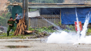 Với sức trẻ và sự nhiệt huyết, các chiến sĩ Công an huyện Bát Xát (Lào Cai) cùng với dân quân, bộ đội... đã lội ruộng cắt lúa giữa trưa nắng. Lúa được bó tròn và kéo đến những bờ ruộng cao trước khi đưa vào máy tuốt.
