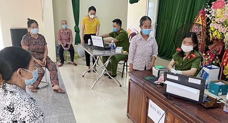 Cán bộ Phòng Cảnh sát QLHC về TTXH hướng dẫn người dân trở về địa phương để nhận CCCD.