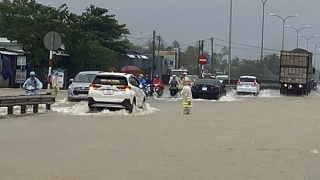 Còn trên quốc lộ 1A đoạn qua tỉnh Quảng Nam, một số điểm bị ngập sâu gây khó khăn cho các phương tiện di chuyển, Phòng CSGT Quảng Nam đã bố trí lực lượng điều tiết giao thông, hướng dẫn phương tiện lên cao tốc để tiếp tục lưu thông.