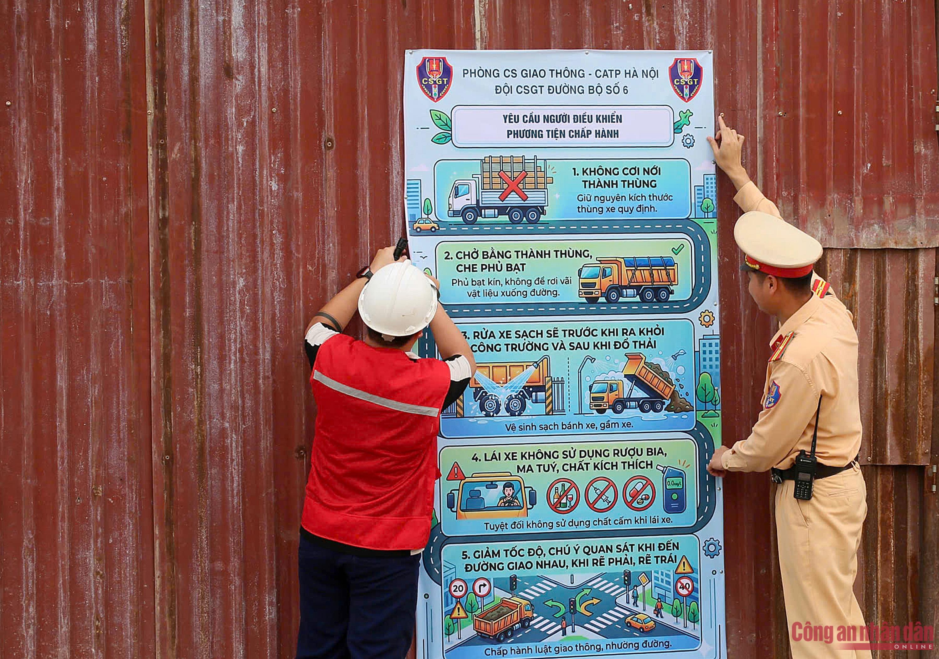 Trước tình hình trên, Đội CSGT số 6 đã phối hợp công an cơ sở và các lực lượng liên quan chủ động vào tận công trường, làm việc với nhà thầu, đơn vị thi công, vận tải.