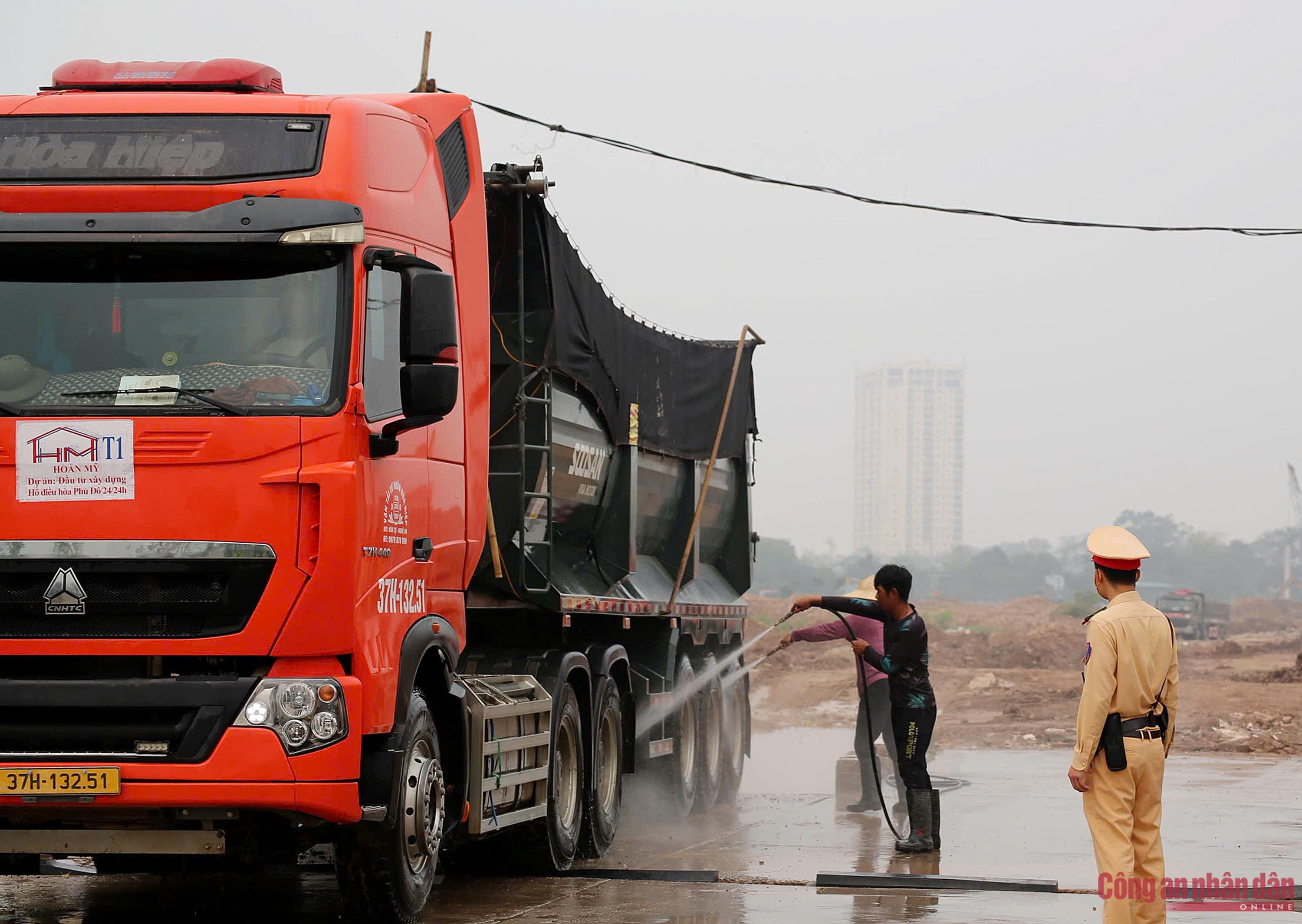 Ngoài ra, lực lượng chức năng yêu cầu mọi phương tiện trước khi ra khỏi công trường phải xịt rửa sạch bùn đất; đồng thời kiểm soát đầy đủ các điều kiện về giấy tờ, kích thước thành thùng, tải trọng và điều kiện của người lái.