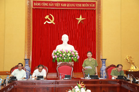 Phát biểu tại cuộc họp, Thứ trưởng Tô Lâm ghi nhận, đánh giá cao và biểu dương tinh thần nỗ lực, cố gắng khắc phục khó khăn của CBCS Công an các đơn vị, địa phương trong công tác đảm bảo ANTT; thực hiện tốt chức năng, nhiệm vụ được giao trong quá trình chuẩn bị tổ chức Lễ mít tinh, diễu binh, diễu hành kỷ niệm 70 năm Cách mạng Tháng Tám và Quốc khánh 2/9.