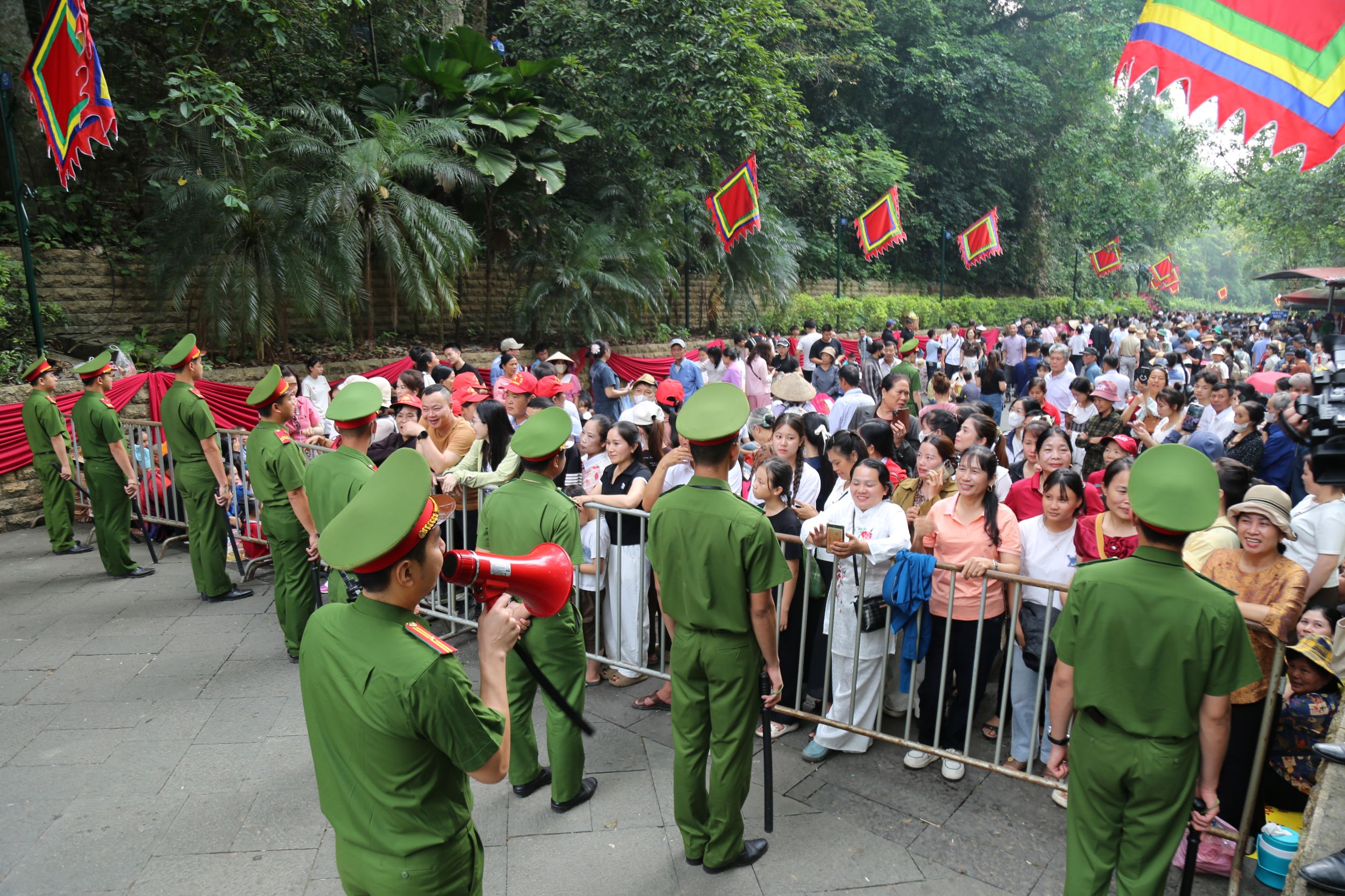 Ông Nguyễn Văn Khang (60 tuổi), quê ở Ninh Bình chia sẻ: “Ngày chính hội, tôi thấy lực lượng Công an làm “hàng rào mềm” tại các khu vực chính để điều tiết lượng du khách lên đền rất khoa học. Dù chúng tôi phải chờ đợi theo sự phân luồng, nhưng ai nấy cũng đều nghiêm túc chấp hành, kiên nhẫn xếp hàng, giữ gìn trật tự”.