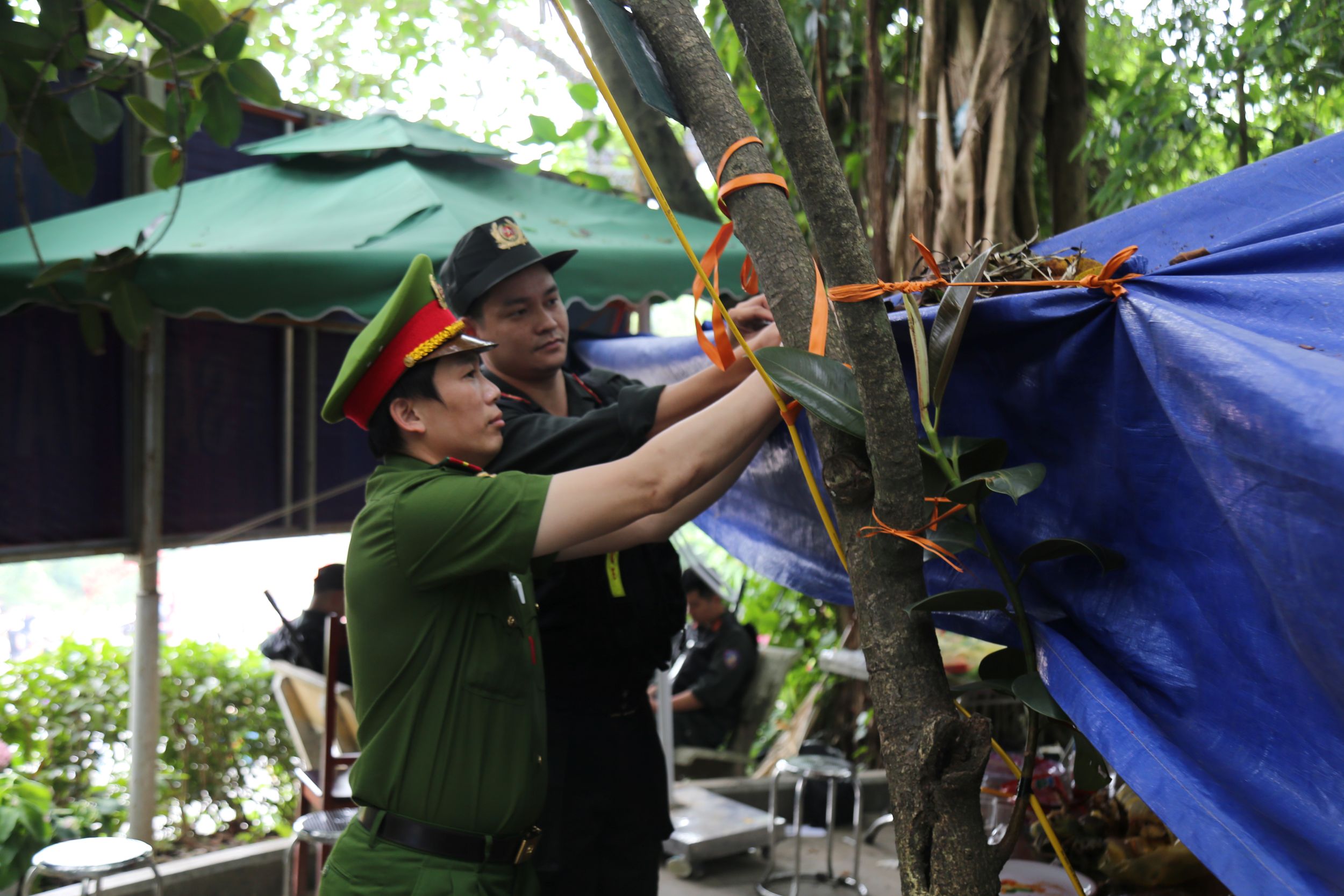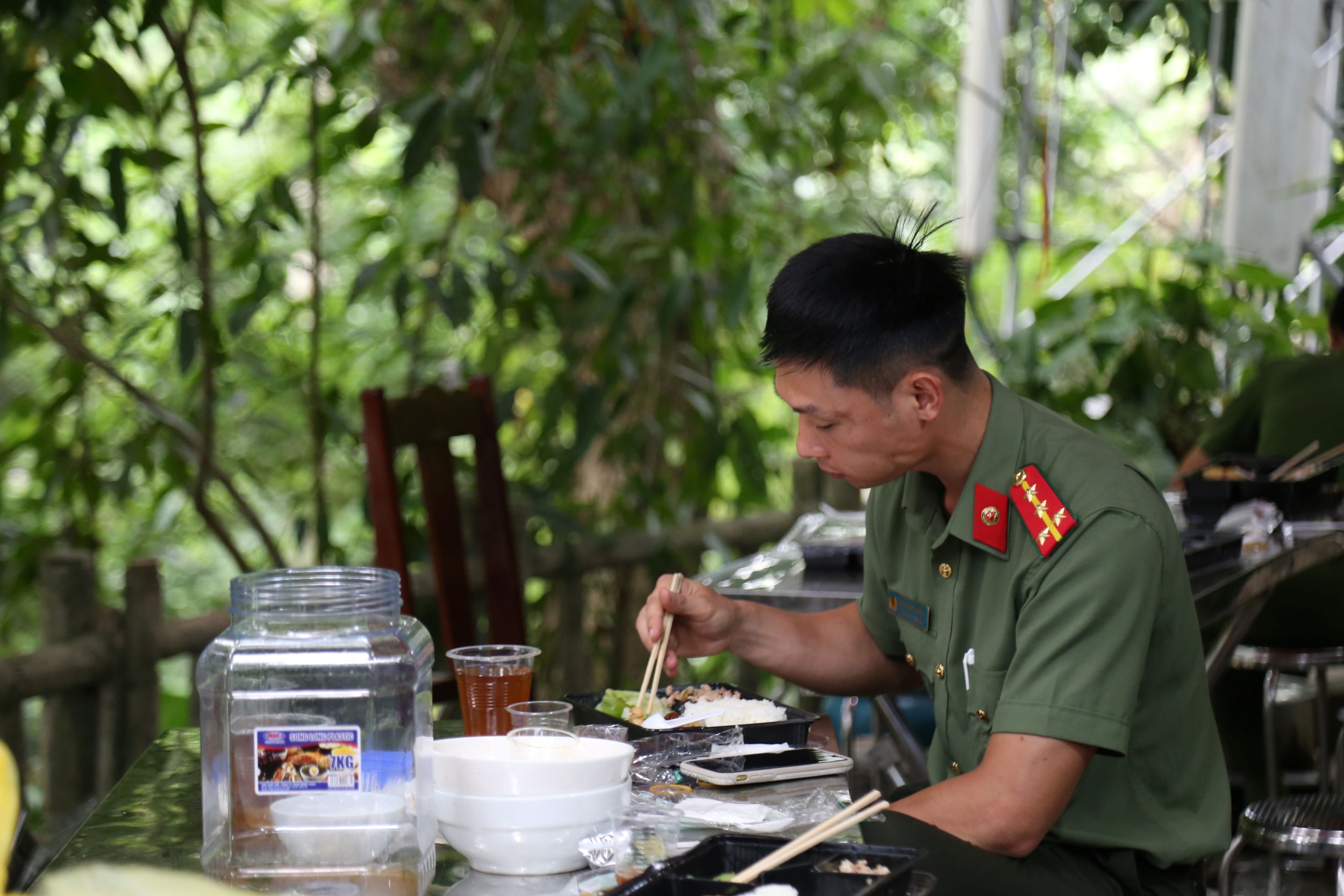 Để thực hiện nhiệm vụ, Công an tỉnh đã dựng 4 lán tạm ngay tại khu vực này. Bên trong là hàng chục chiếc giường gấp – nơi các CBCS tranh thủ nghỉ ngơi sau những ca trực kéo dài. Dù phải đối mặt với những cơn mưa bất chợt, từng đàn muỗi rừng vo ve cùng những vết đốt chi chít trên tay chân, hay đôi mắt thâm quầng vì thiếu ngủ, họ vẫn giữ vững tinh thần, quyết tâm không rời vị trí, góp phần đảm bảo an ninh, an toàn cho lễ hội.